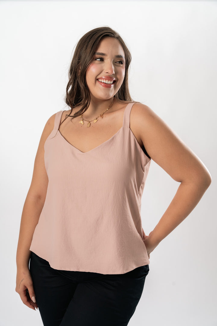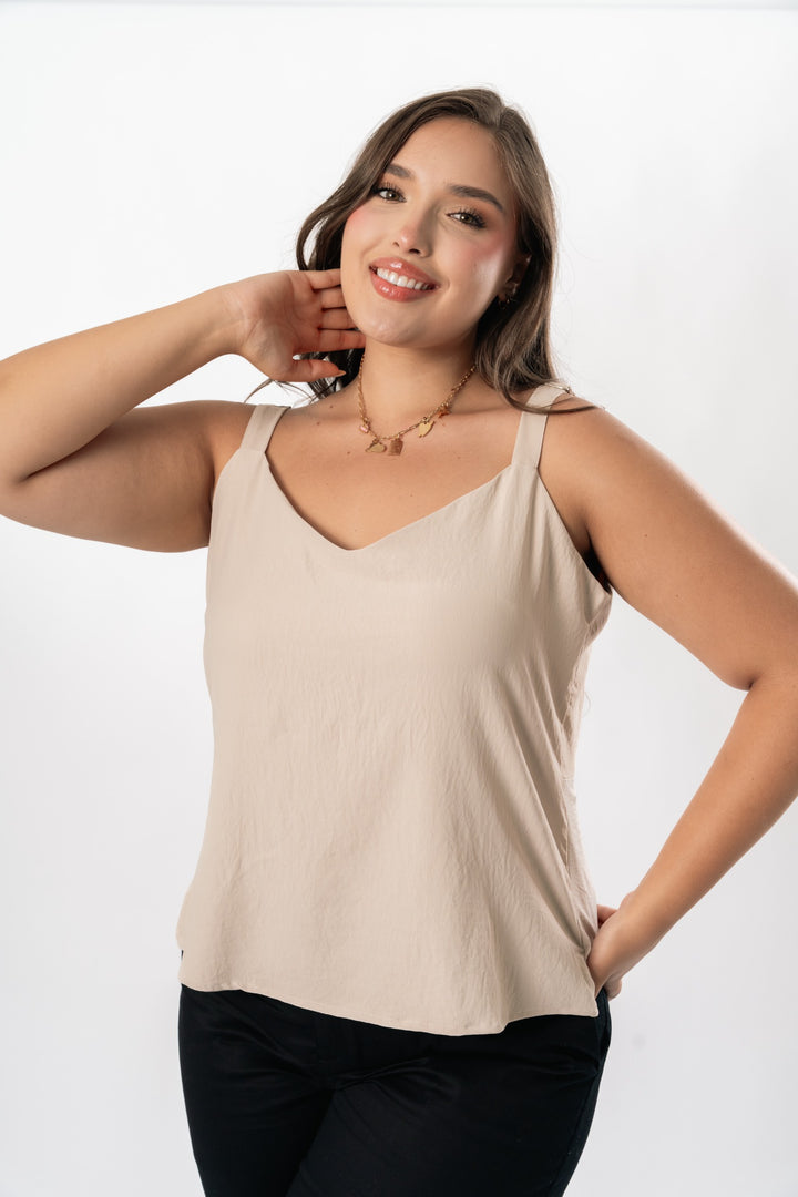 Blusa en tela keops, silueta suelta nuedo en espalda.