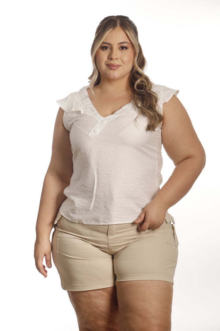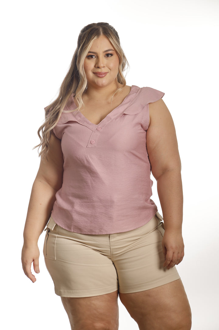Blusa en tela chalis con bolero en hombros .
