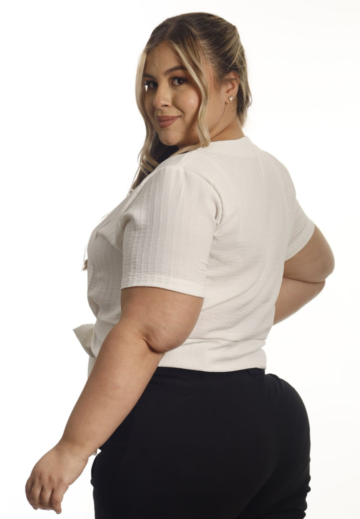 Blusa en chalis, moño enfrente.